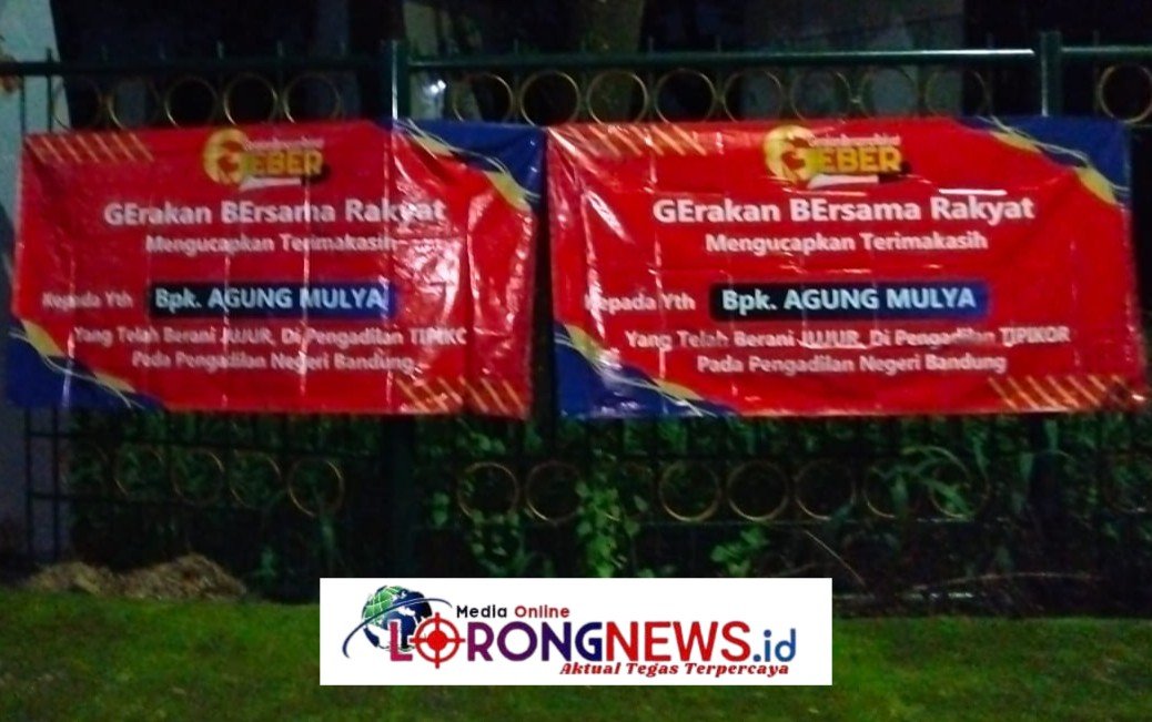 Pesan dalam spanduk tersebut tertuliskan “Gerakan Bersama Rakyat Mengucapkan Terimakasih Kepada Yth Bpk. AGUNG MULYA Yang Telah Berani JUJUR, Di Pengadilan TIPIKOR Pada Pengadilan Negeri Bandung.”
