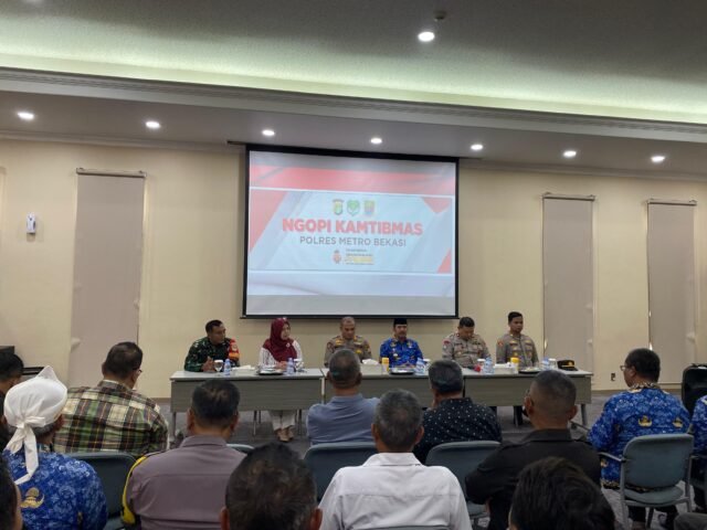 BEKASI | LORONGNEWS.ID | Kapolsek Cikarang Barat, AKP Tri Baskoro Bintang Wijaya, SIK, MH, Mendampingi Kapolres Metro Bekasi, Kombes Pol Mustofa, S.I.K., M.H., melaksanakan kegiatan Ngopi Kamtibmas dalam rangka Operasi Berantas Jaya 2025 yang digelar di Aula Kantor Pengelola Kawasan MM2100, Kecamatan Cikarang Barat, Kabupaten Bekasi.