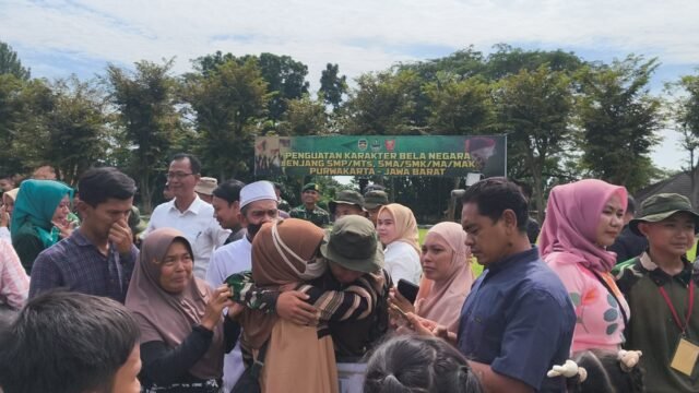 PURWAKARTA | LORONGNEWS.ID |Suasana haru menyelimuti Markas Resimen Armed 1/Sthira Yudha Purwakarta, Minggu, 18 Mei 2025. Terdapat 39 pelajar yang mengikuti pelatihan pendidikan berkarakter bela negara selama 14 hari akhirnya pulang.