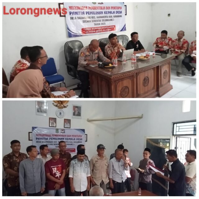 KARAWANG, LORONGNEWS.id – Pembentukan panitia Pilkades desa Balongsari dilaksanakan di aula desa dan di hadiri berbagai unsur,muspika, camat di wakili, Kapolsek serta jajaran, BPD, Para perangkat desa tokoh agama dan para tamu undangan, kamis (23/10/2025).