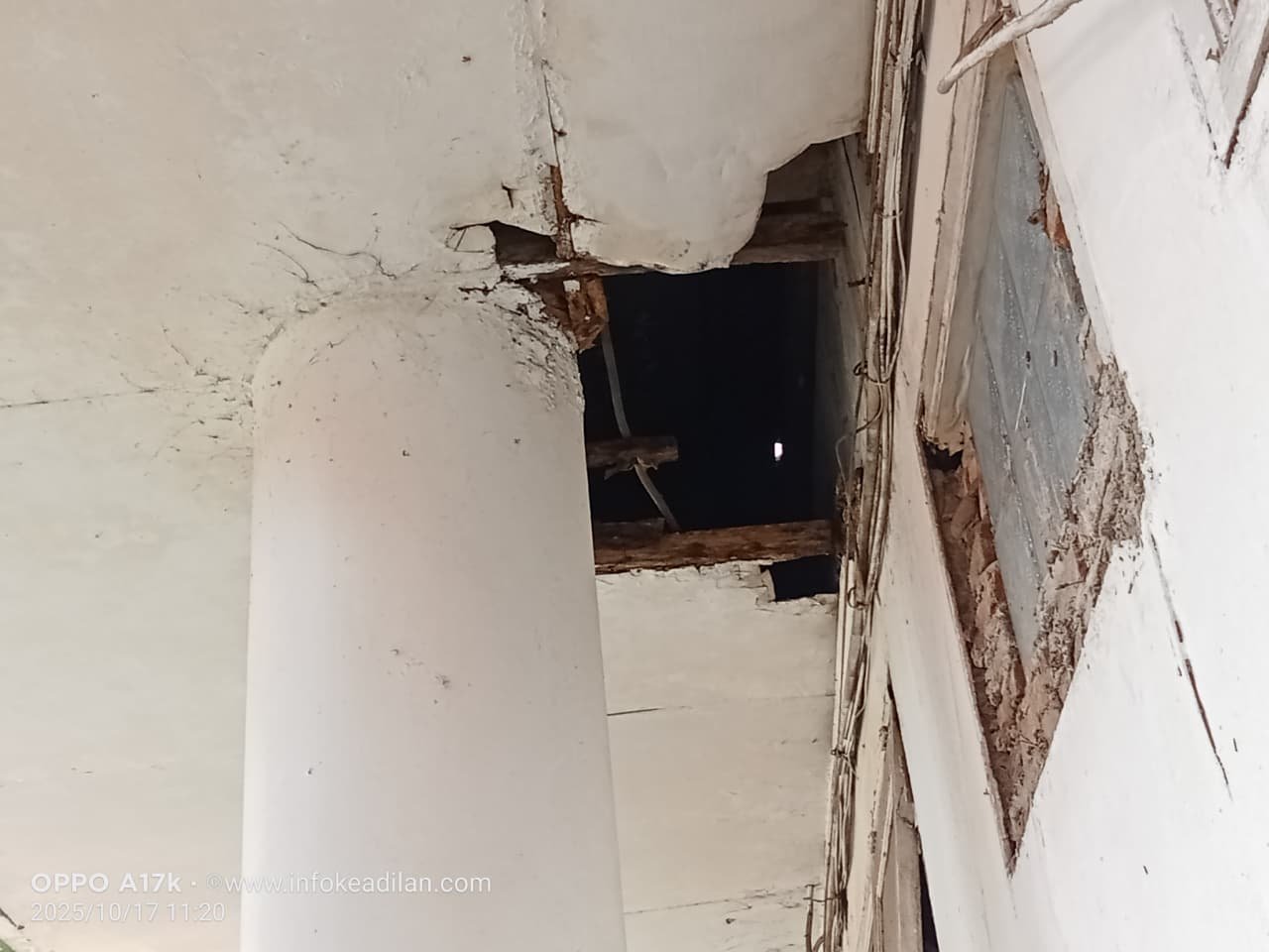 Hal tersebut terungkap saat awak media melakukan investigasi langsung ke lapangan. Dari hasil pantauan terlihat beberapa bagian bangunan mengalami kerusakan cukup serius. Atap plafon terlihat rusak dan berlubang di beberapa titik, bahkan lebih mirisnya lagi, terdapat tumbuhan liar yang tumbuh subur di atas gedung kantor lantai dua, menambah kesan kumuh dan tidak terurus pada bangunan yang seharusnya menjadi tempat kerja yang representatif bagi aparatur pemerintah.
