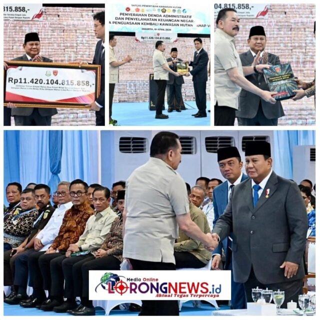 JAKARTA, LORONGNEWS.id – Presiden Prabowo Subianto menyaksikan penyerahan denda administratif dan penyelamatan keuangan negara, serta penguasaan kembali kawasan hutan tahap VI, di Kompleks Kejaksaan Agung RI, Jakarta, Jumat (10/04/2026). Kegiatan ini menjadi bagian dari upaya pemerintah dalam memperkuat tata kelola sumber daya alam serta memastikan optimalisasi penerimaan negara.
