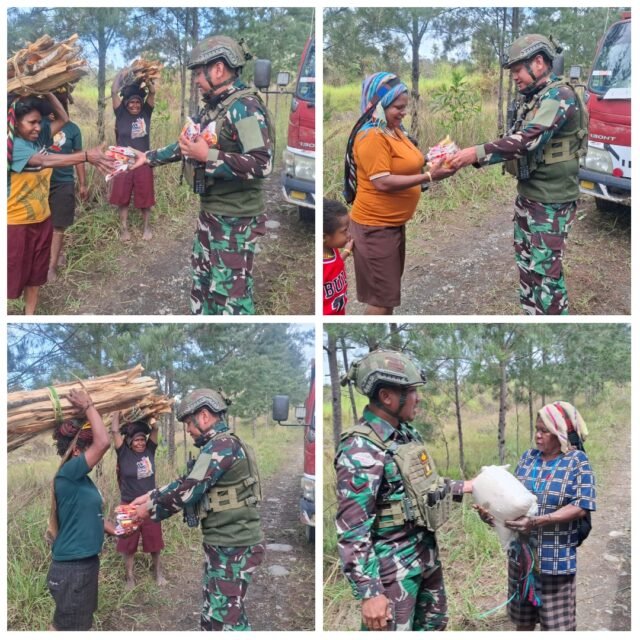 OMUKIA, PAPUA, LORONGNEWS.id – Di balik sunyi hutan dan kabut pegunungan Papua, suara langkah prajurit Satgas Yonif 700/WYC bergema menuju Kampung Aminggaru, Distrik Omukia, Kabupaten Puncak. (19 September 2025). Bukan dengan deru senjata mereka hadir, melainkan dengan ketulusan hati membawa sembako: beras dan Indomie, sebagai wujud kepedulian bagi warga yang hidup sederhana di pedalaman.