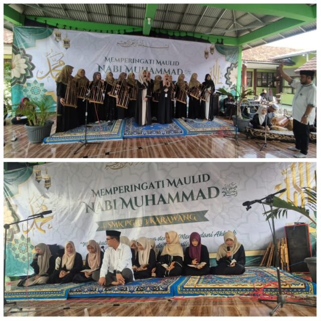 KARAWANG, LORONGNEWS.id – Dengan peringatan Maulid Nabi, SMK PGRI Rengasdengklok, Karawang, terus berkomitmen menjadikan peringatan maulid Nabi Muhammad SAW sebagai tradisi setiap tahun. Harapannya, kegiatan peringatan Maulid Nabi terus melahirkan generasi berakhlak mulia dan peduli antar sesama serta bisa melahirkan siswa dan siswi terbaik,kamis (26/9/2025).